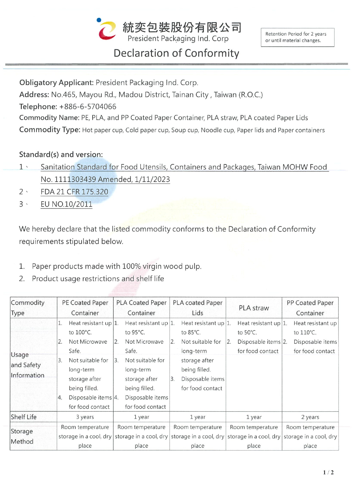 Product Conformity Statement